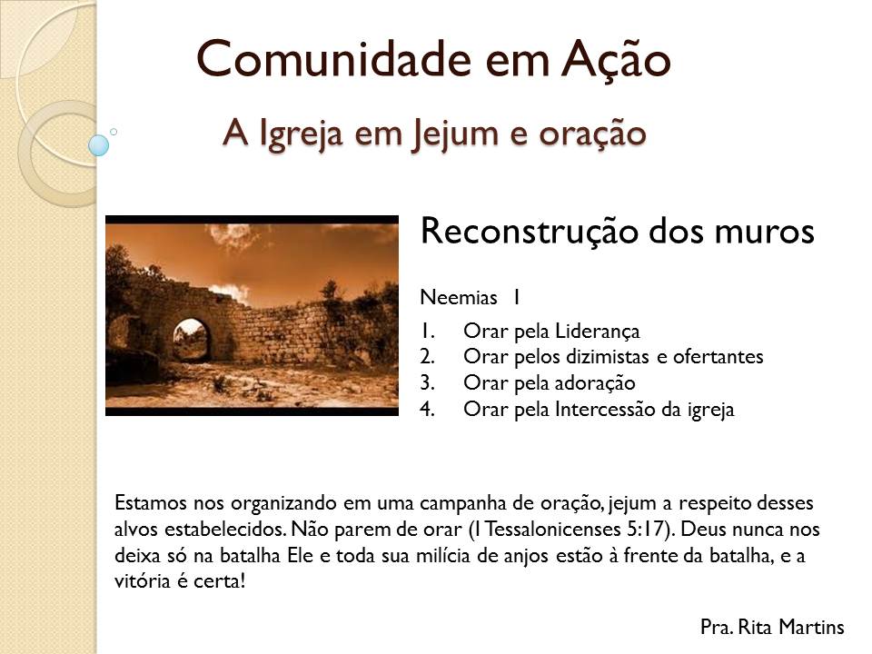 mas também tomando atitude, se posicionando e recebendo estratégia da parte de Deus para a reconstrução...